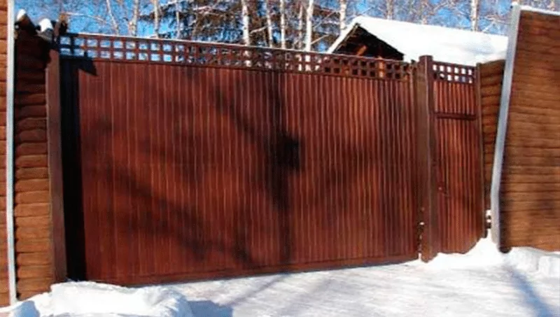 Отсутствие сложных механизмов помогает воротам справляться со своей функцией даже зимой. Не страшны им и прочие негативные воздействия: осадки, перепады температуры и т. д. Они нетребовательны в уходе, долговечны, при установке нет ограничения по размерам и высоте.
